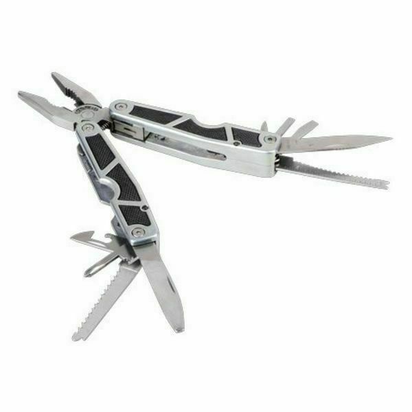 Zestaw składający się z 11-funkcyjnego multitoola i 9-diodowej latarki w opakowaniu upominkowym. Ostrza wykonane ze stali nierdzewnej. Multitool posiada antypoślizgowe okładziny z tworzywa ABS. Zawiera: szczypce uniwersalne, okładziny antypoślizgowe, szydło, wkrętaki płaskie, otwieracz do butelek, nóż, skrobak do ryb z końcówką do haczyków wędkarskich, pilnik, piłę, wkrętak PH krzyżowy, otwieracz do konserw. Do zestawu dołączone są baterie – 3 x AAA.